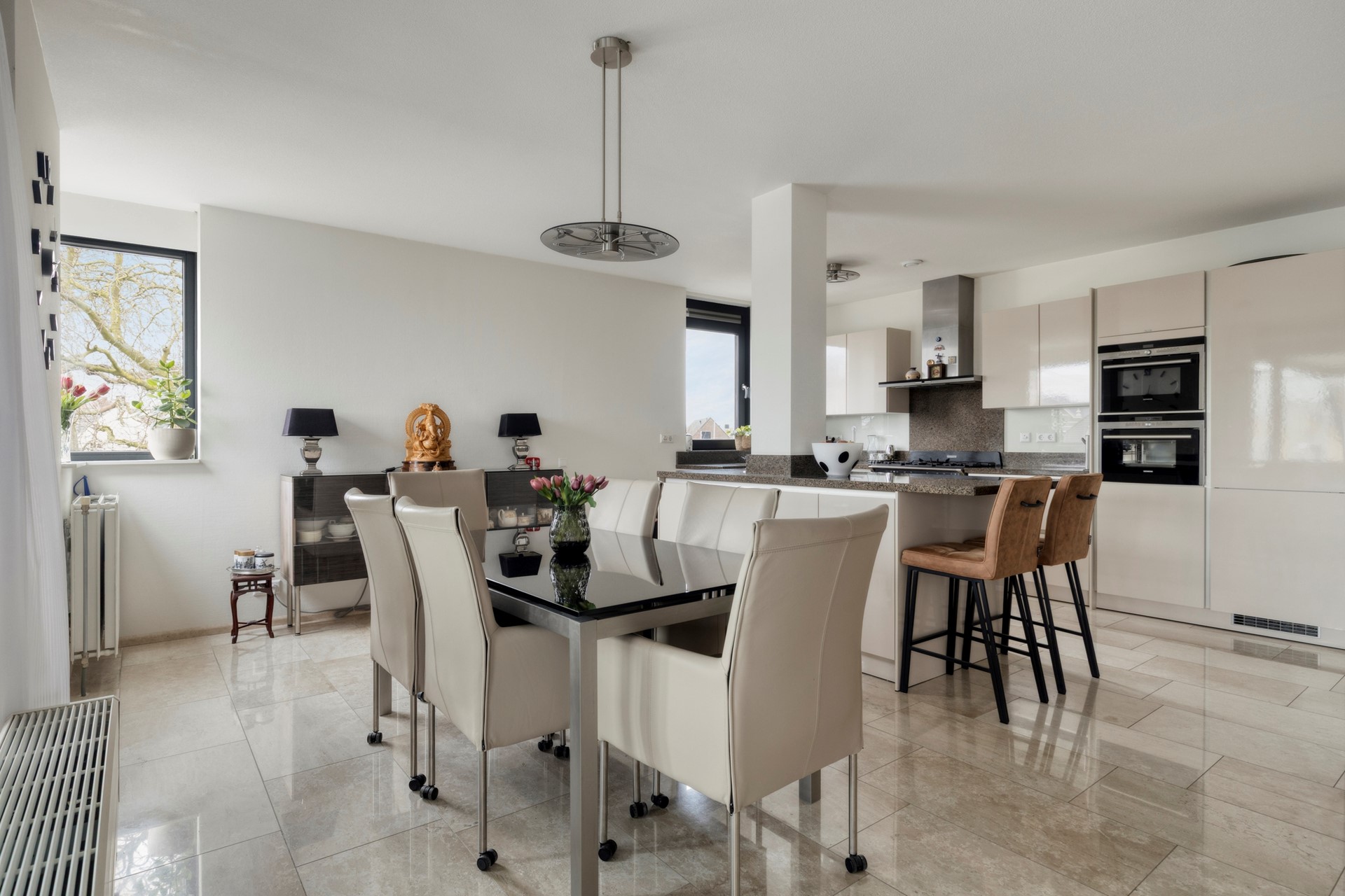 • Uiterst royale en zonnige woon-/eetkamer met uitzicht over de Oude Rijn