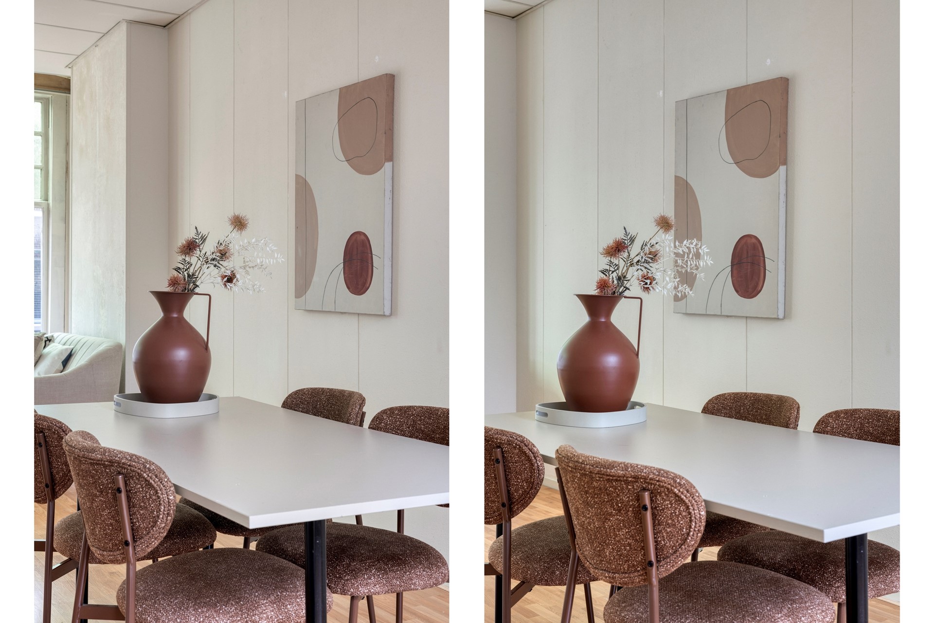 De woon- en eetkamer vormen het kloppende hart van het appartement. Pak een goed boek, gooi je favoriete playlist aan of nodig vrienden uit voor een gezellige borrel – het kan hier allemaal. De ruimte is verrassend royaal, waardoor je moeiteloos lekker met z’n tweeën kunt eten, werken of ontspannen, zonder op elkaar lip te zitten. En ja, er blijft ook nog voldoende plek over voor de nodige planten of een opvallend kunstwerk.