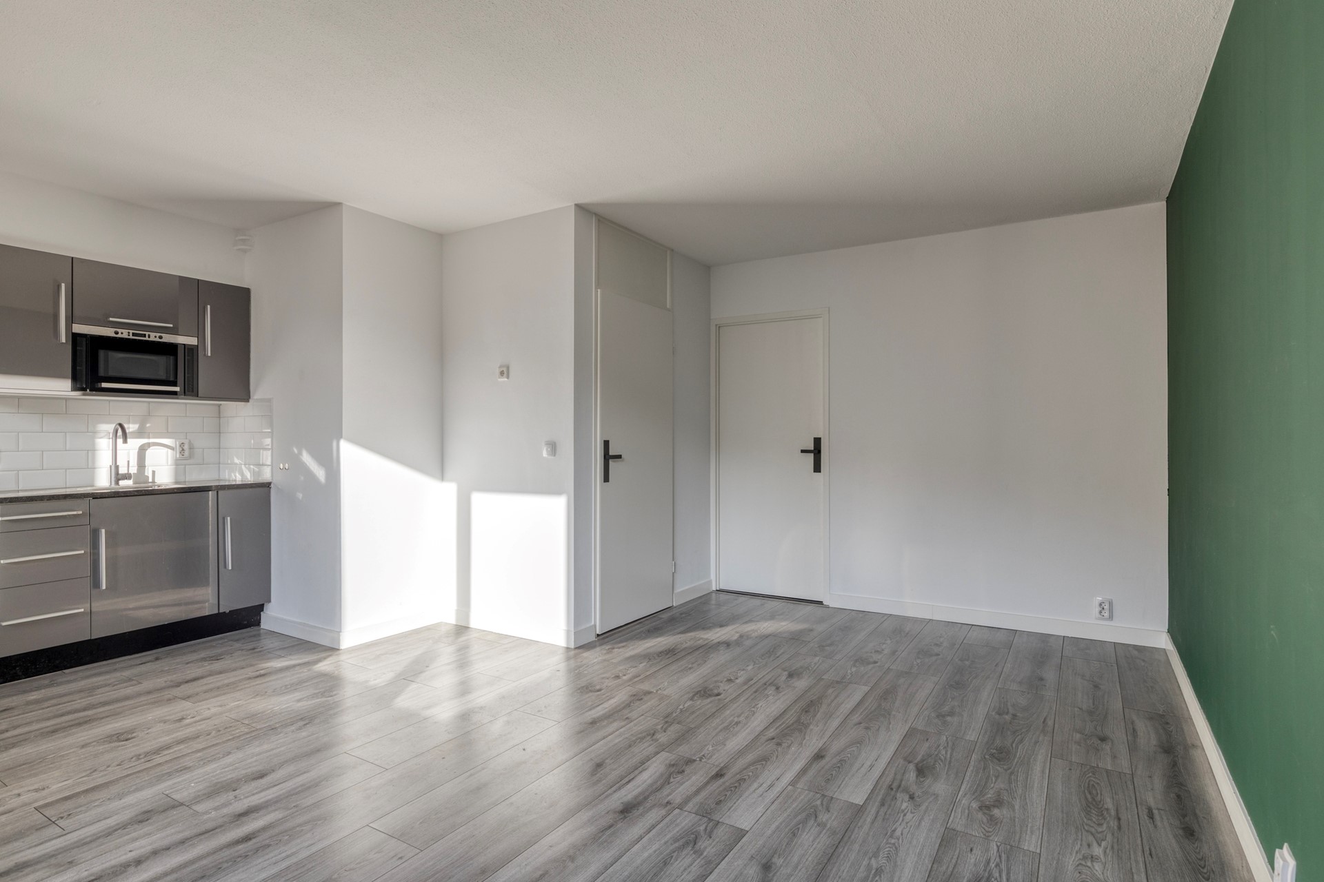 het gehele appartement is uitgevoerd met een laminaatvloer, gladde gestucte wanden en modern sanitair en keuken.