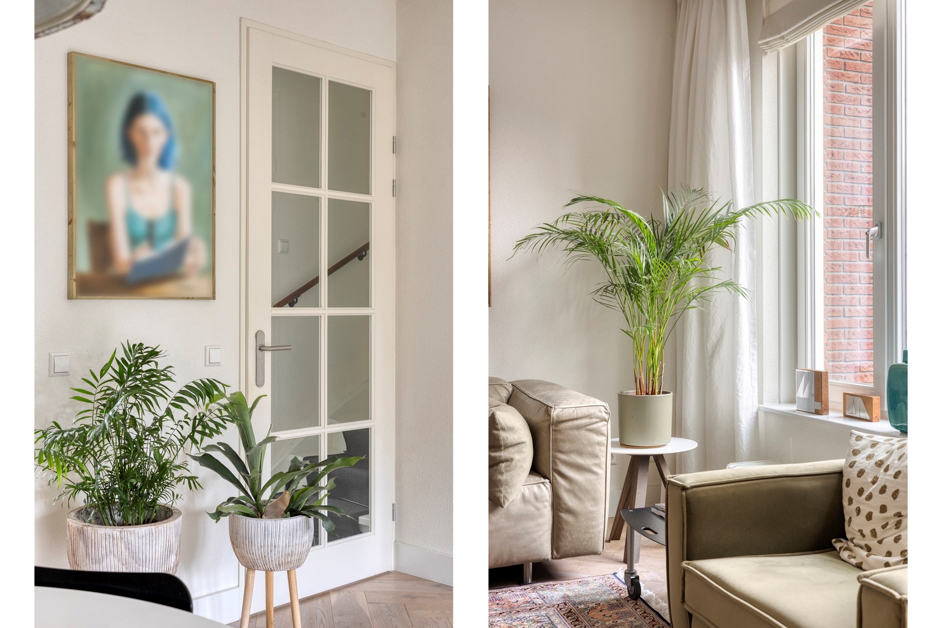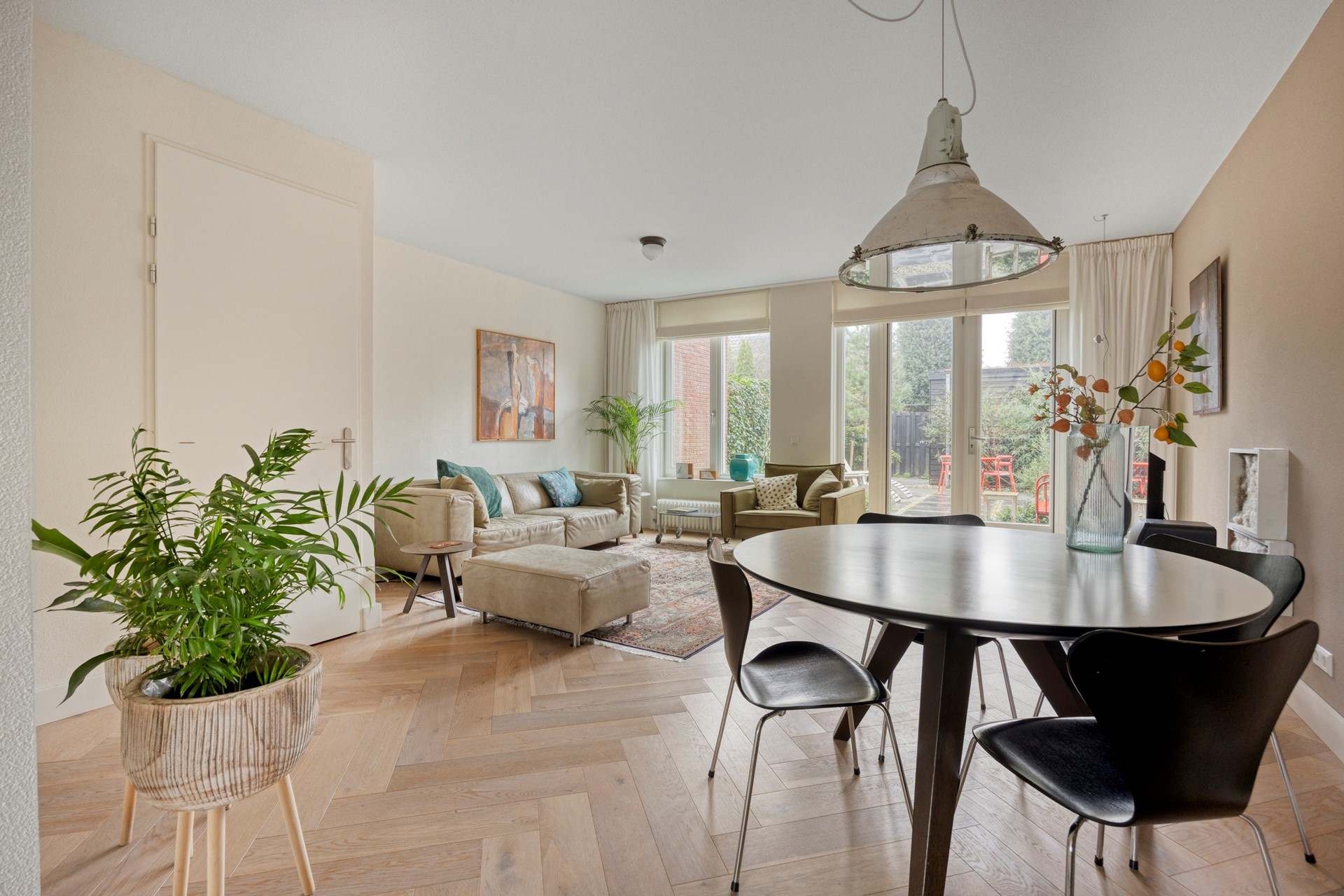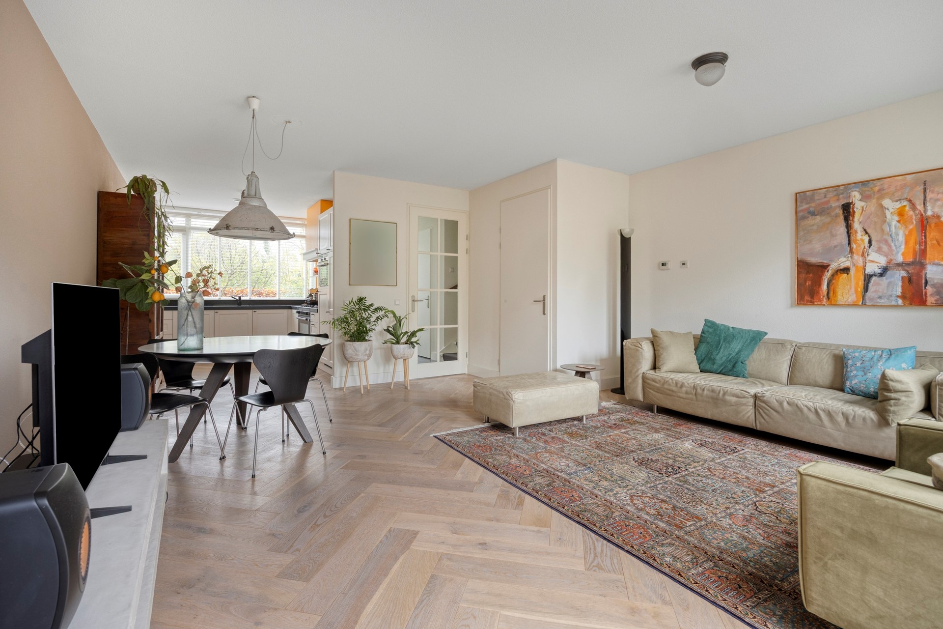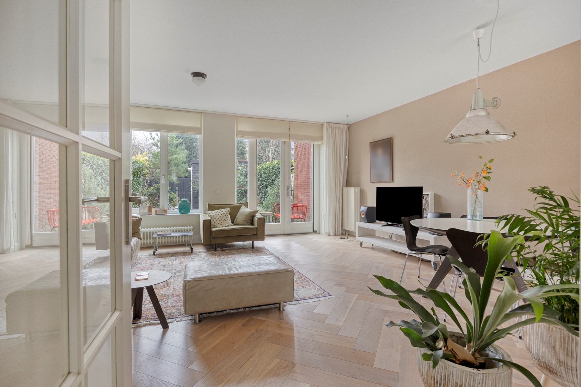 * massief houten eiken vloeren in de woonkamer en op de 2e verdieping