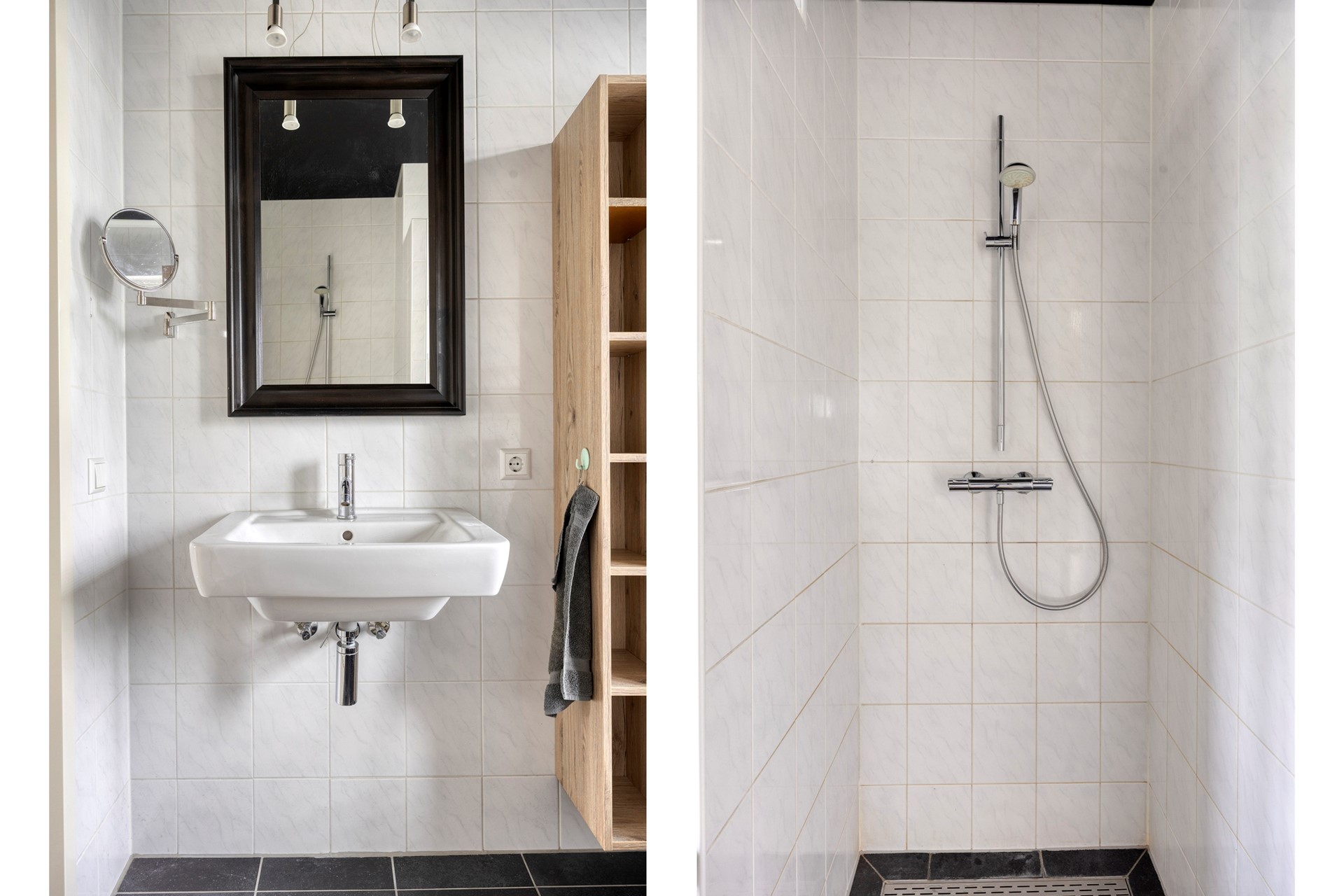 1e verdieping: ruime overloop, slaapkamer I met vaste schuifkastenwand, slaapkamer II en III. Luxe badkamer met ligbad, inloopdouche, wastafelmeubel en wandcloset. De badkamer is fraai betegeld tot aan het plafond en voorzien van een design radiator.