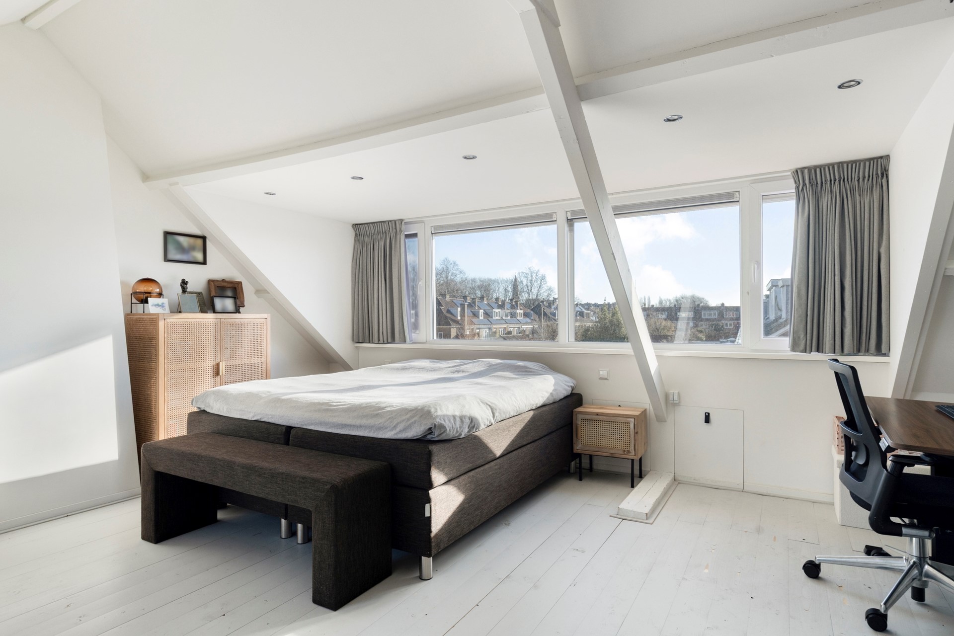 Ruime slaapkamer met aan de voorzijde en achterzijde een dakkapel waardoor een prachtige grote slaapkamer is ontstaan. In de slaapkamer is een prachtig bad en wastafel aanwezig. De ruimte is zo groot dat je ook nog kan inrichten als een werkruimte. Verder is er een opstelplaats voor de wasmachine en veel bergruimte aanwezig.
