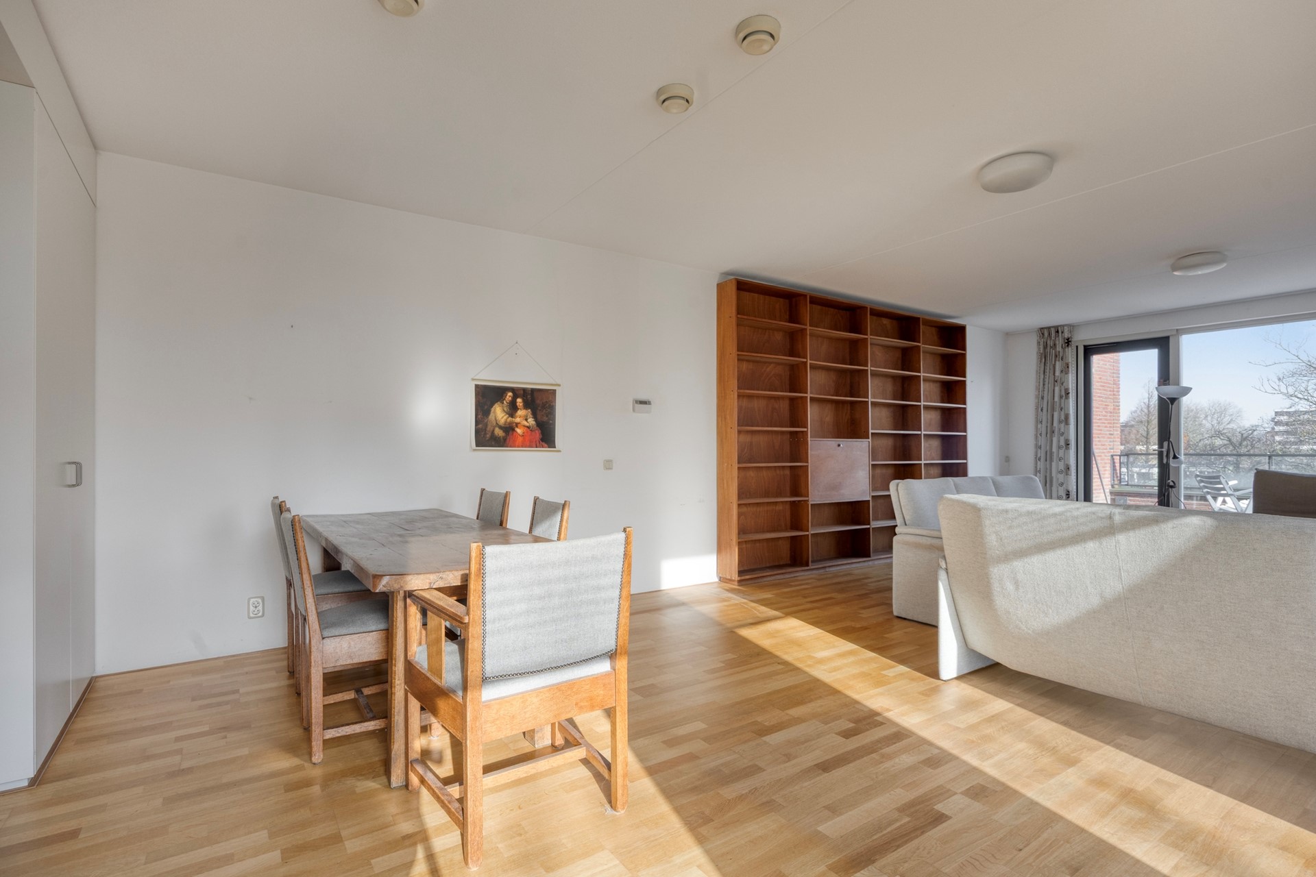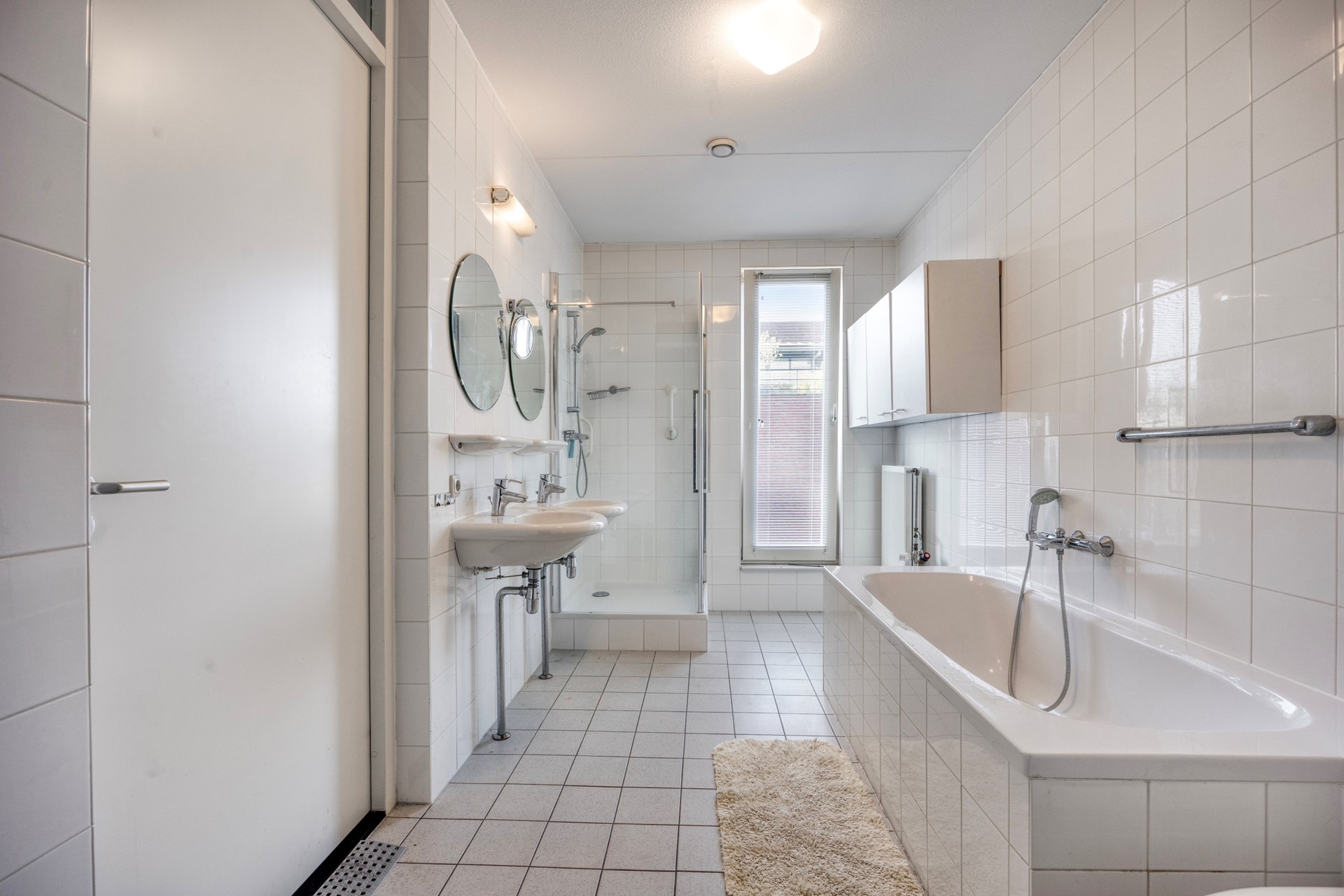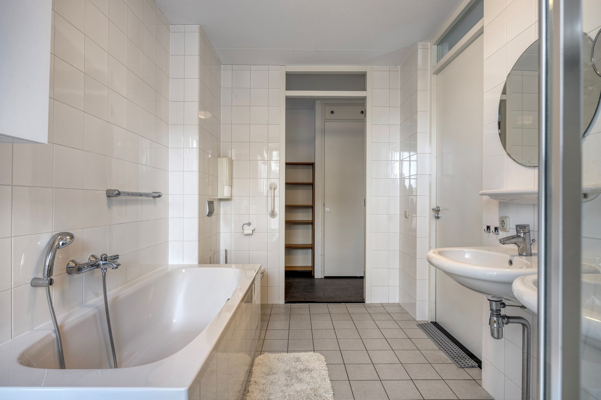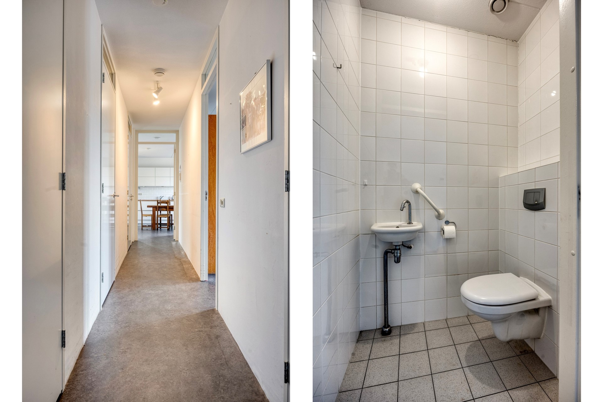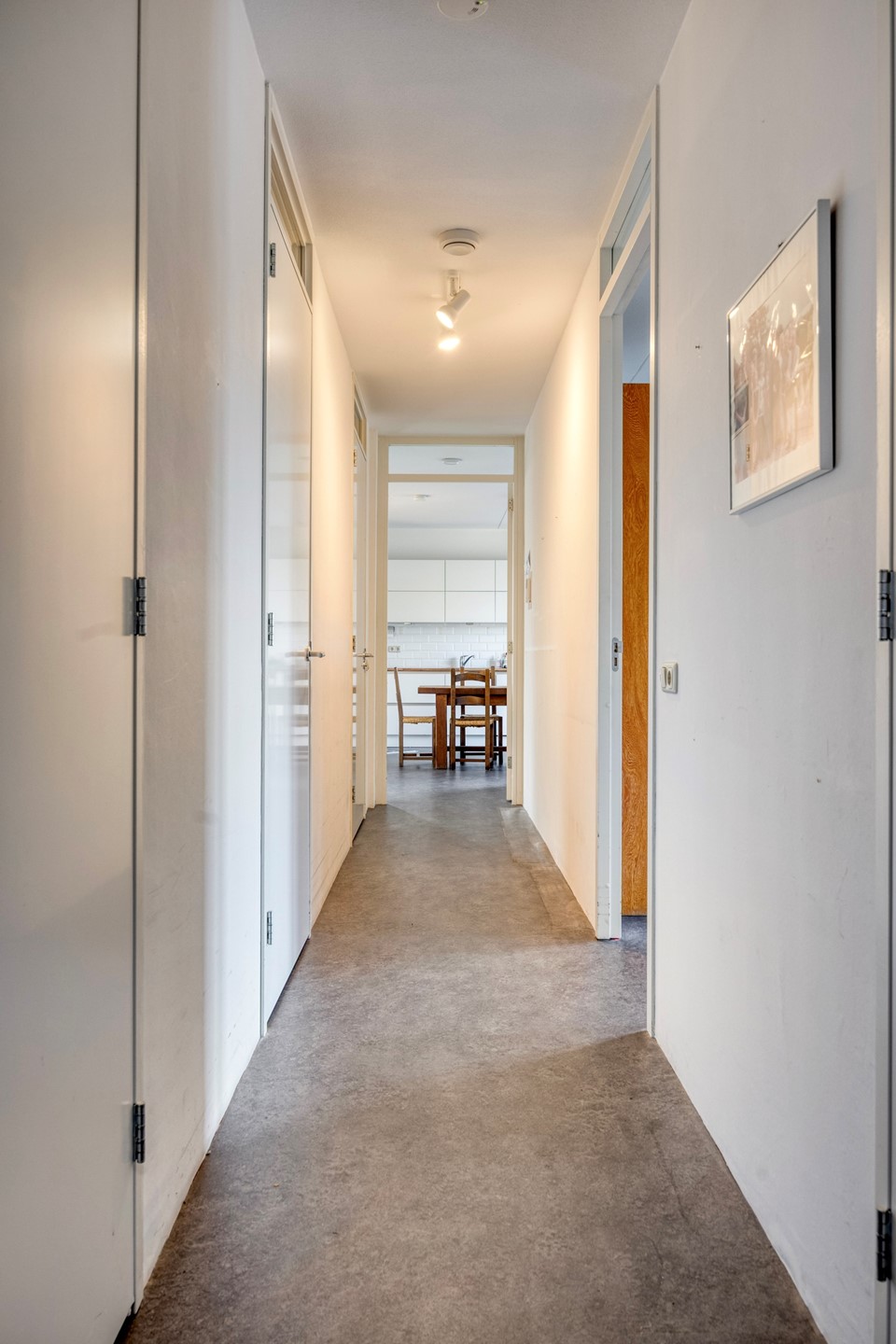 Gang/ hal, gasten toilet met fonteintje, ruime berging met de opstelplaats voor de was/ droog combinatie, mechanische ventilatie en de cv combiketel, kleinste kamer, hoofdslaapkamer met tussen beide kamers de ruime badkamer met ligbad, 2e toilet, wastafel, douche en groot raam, zeer ruime woonkeuken, met deur naar het achterbalkon op het zuidwesten, zeer ruime woonkamer met zijraam en deur naar het voorbalkon op het noordwesten, de woonkamer en de keuken worden gescheiden door een moderne ensuite met schuifdeuren voorzien van helder glas en kasten aan beide zijde.