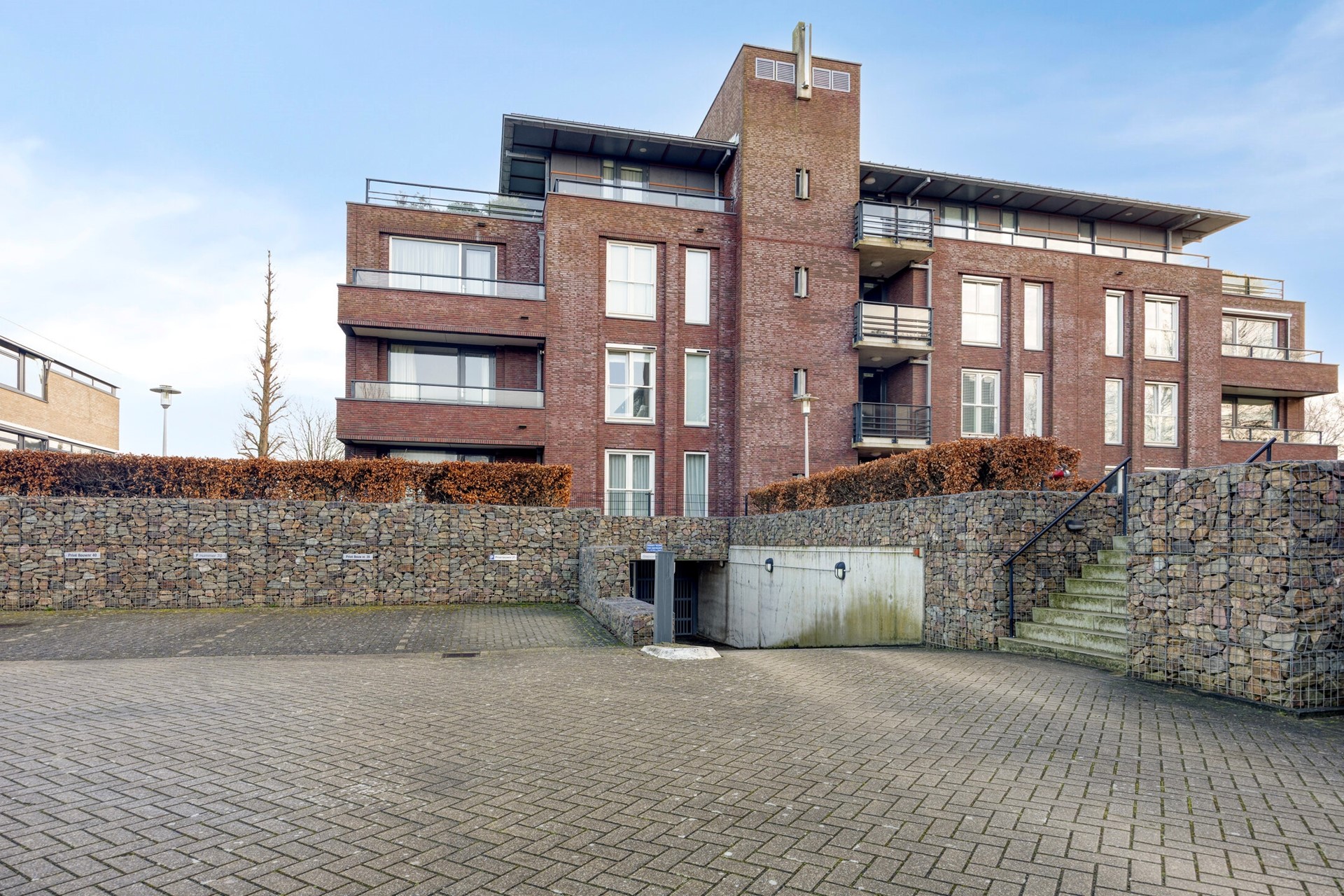 via de lift naar de onderbouw, waar u de 2 ruime parkeerplaatsen vind en uw eigen berging