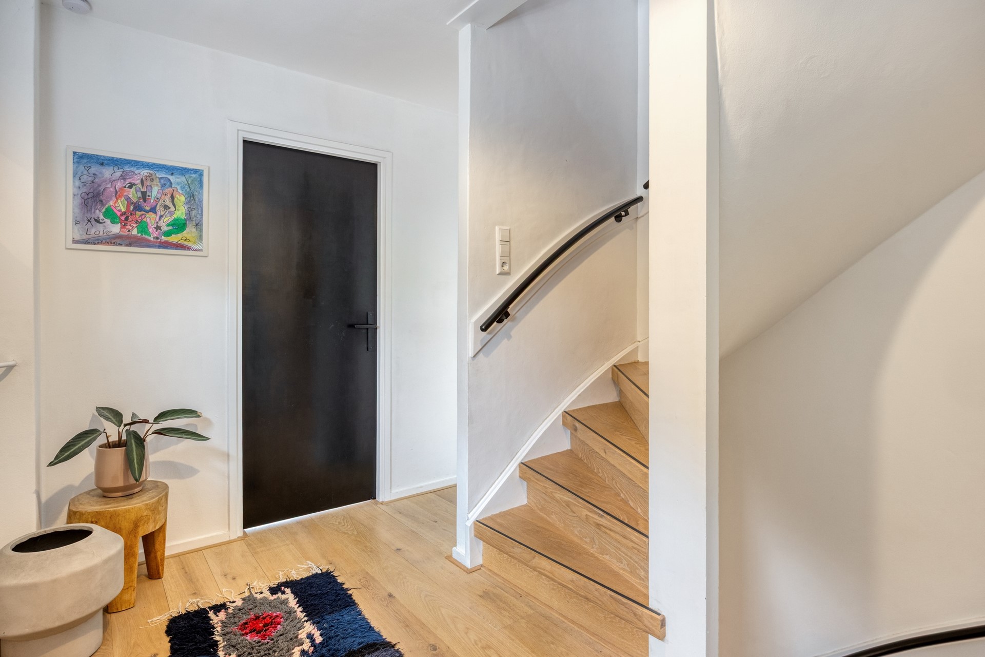 Begane grond: Entree via eenruime hal met meterkast (voldoende groepen en A.L.S.), gastentoilet en trapkast.