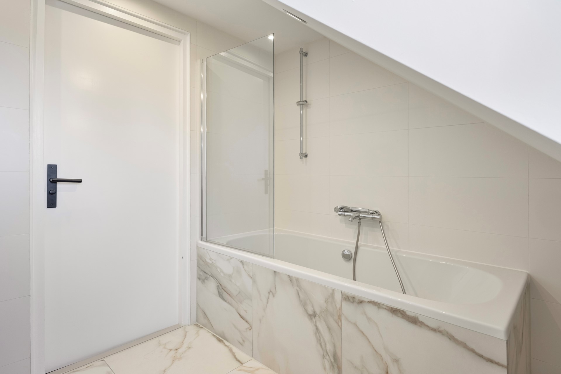 Overloop, aparte wasruimte en bergruimte waar tevens de opstelplaats voor de CV Combiketel, 2e badkamer met ligbad/ douche en wastafel, ruime zolderkamer met vaste kast en dakkapel. Vanuit de zolderkamer is er toegang tot de bergvliering.