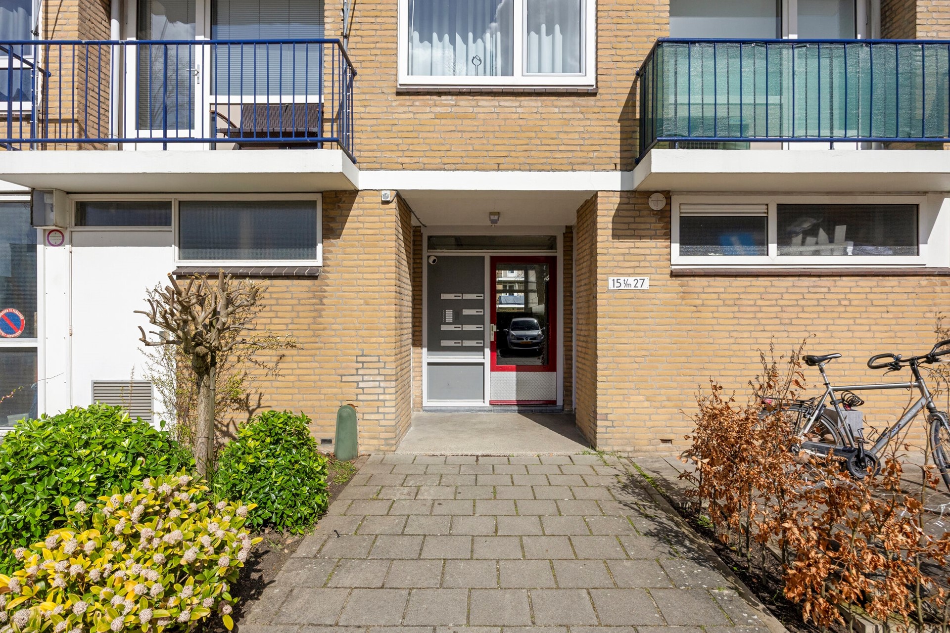 via afgesloten hoofd entree met bellen tableau en brievenbussen, naar de 3e verdieping.